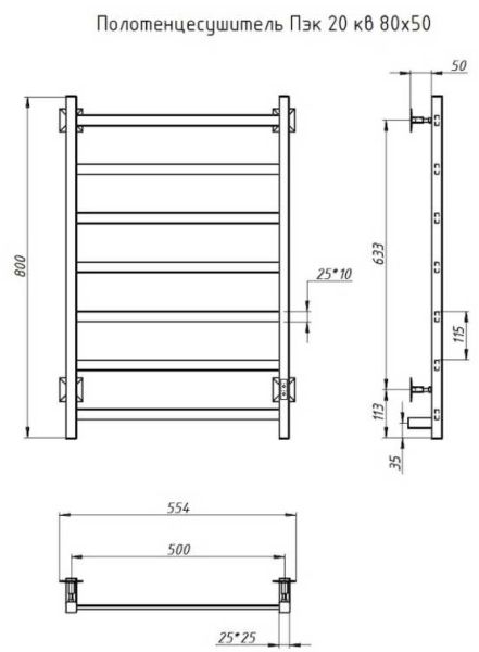 Электрический полотенцесушитель Тругор Пэк 20кв 80x50см хром Пэк20кв/8050 купить