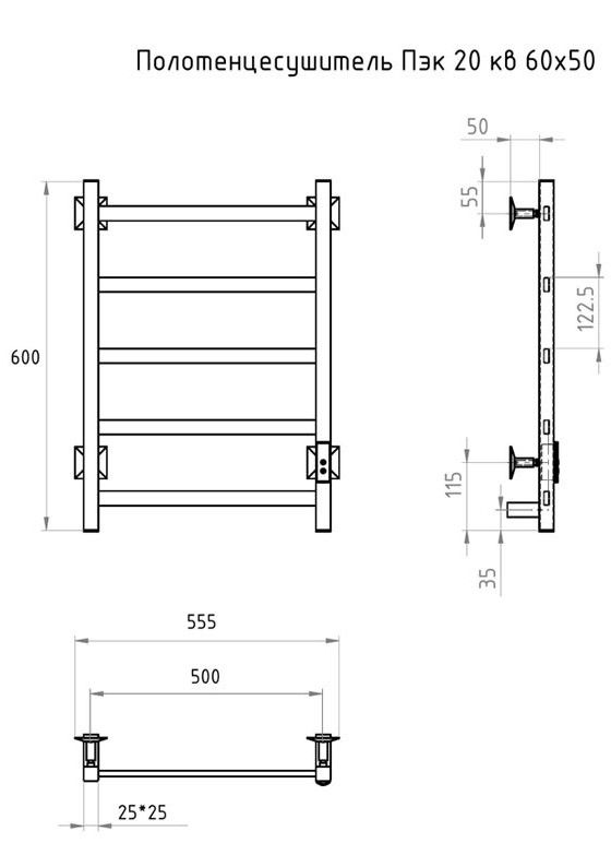 Электрический полотенцесушитель Тругор Пэк сп 20кв 60x50см чёрный ПЭКсп20кв/6050черныйВГП купить