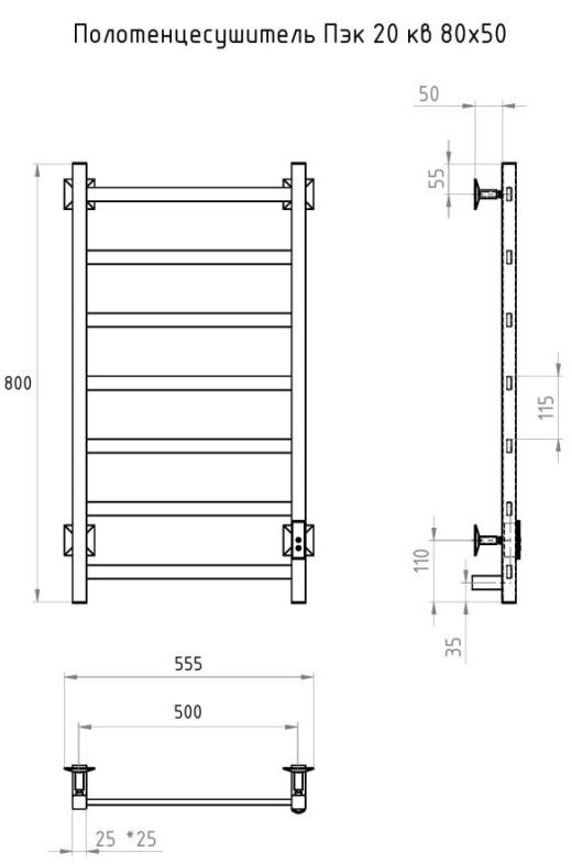 ПЭК — Полотенцесушитель электрический кабельный. Изделие производится из нержавеющей стали AISI 201. Вертикальные трубы d -32 мм., для горизонтальных вставок используется труба d — 18 мм.Нагревательным элементом в полотенцесушителе является греющий кабель — аналог «теплого пола», кабель заправляется внутрь каждой трубы и передает тепло на поверхность изделия. Во включенном состоянии постоянно поддерживается температура 50-600.Экономичность: Полотенцесушитель снабжен панелью управления. Кнопка включения/выключения и таймер на 2 часа и 4 часа, который позволяет включать изделие на ограниченное время. Эта функция дает возможность экономить электричество.Мощность электрического прибора порядка 60W при стоимости 1 кВт — 5 руб несложно посчитать: 60W х 24 = 1,5 кВт в сутки. Стоимость эксплуатации изделия за сутки 1,5 кВт х 5 руб. = 7,5 руб. Максимальный расход электричества за месяц примерно 225 руб. При условии если сушка работает круглосуточно.Удобство монтажа: Полотенцесушитель крепится к стене на четыре держателя. Универсальное исполнение изделия позволяет подключить его, как справа, так и слева.Скрытое подключение: Благодаря приваренным в нижней части вертикальных труб двум распаячным коробкам, в которых соединяется электропроводка, возможно скрытое подключение к электричеству слева и справа.Подключение в розетку: В комплекте также имеется шнур с вилкой, который будет необходим при подключении к розетке.Панель включения:РЕЖИМ №1 — постоянный нагревРЕЖИМ №2 — работа в течение 2 часов с последующим отключением.РЕЖИМ №3 — работа в течение 4 часов с последующим отключением.