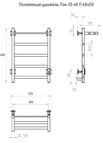 Электрический полотенцесушитель Тругор Пэк сп 20кв П с полкой 60x50см чёрный ПЭКсп20квП/6050чернВГП купить