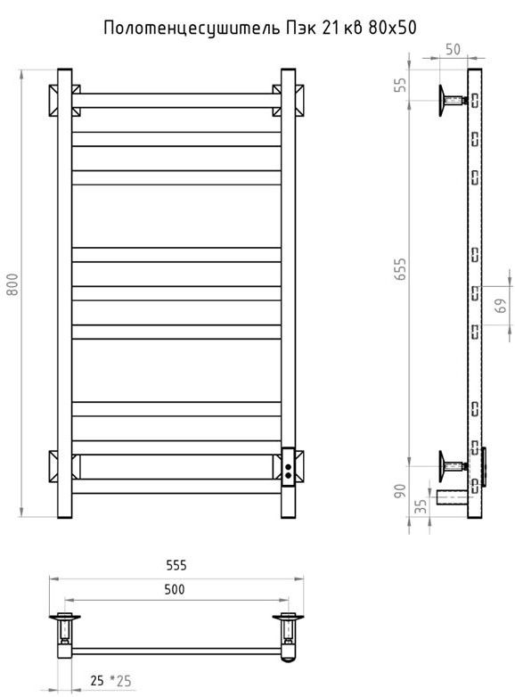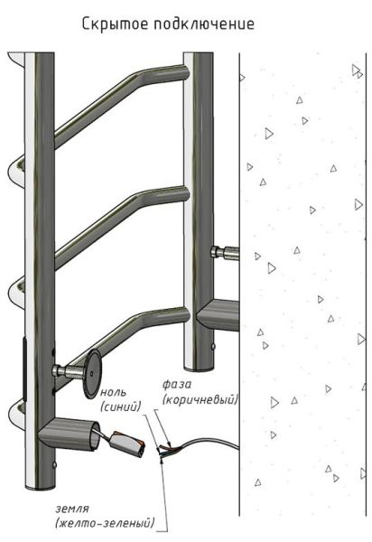 ПЭК — Полотенцесушитель электрический кабельный. Изделие производится из нержавеющей стали AISI 201. Вертикальные трубы d -32 мм., для горизонтальных вставок используется труба d — 18 мм.Нагревательным элементом в полотенцесушителе является греющий кабель — аналог «теплого пола», кабель заправляется внутрь каждой трубы и передает тепло на поверхность изделия. Во включенном состоянии постоянно поддерживается температура 50-600.Экономичность: Полотенцесушитель снабжен панелью управления. Кнопка включения/выключения и таймер на 2 часа и 4 часа, который позволяет включать изделие на ограниченное время. Эта функция дает возможность экономить электричество.Мощность электрического прибора порядка 60W при стоимости 1 кВт — 5 руб несложно посчитать: 60W х 24 = 1,5 кВт в сутки. Стоимость эксплуатации изделия за сутки 1,5 кВт х 5 руб. = 7,5 руб. Максимальный расход электричества за месяц примерно 225 руб. При условии если сушка работает круглосуточно.Удобство монтажа: Полотенцесушитель крепится к стене на четыре держателя. Универсальное исполнение изделия позволяет подключить его, как справа, так и слева.Скрытое подключение: Благодаря приваренным в нижней части вертикальных труб двум распаячным коробкам, в которых соединяется электропроводка, возможно скрытое подключение к электричеству слева и справа.Подключение в розетку: В комплекте также имеется шнур с вилкой, который будет необходим при подключении к розетке.Панель включения:РЕЖИМ №1 — постоянный нагревРЕЖИМ №2 — работа в течение 2 часов с последующим отключением.РЕЖИМ №3 — работа в течение 4 часов с последующим отключением.