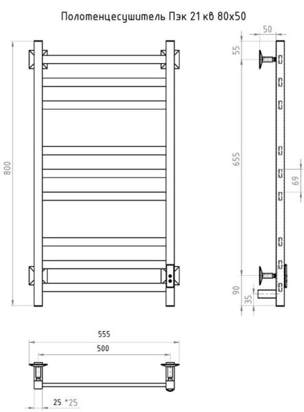 Электрический полотенцесушитель Тругор Пэк сп 21кв 80x50см чёрный Пэксп21кв/8050черныйВГП купить