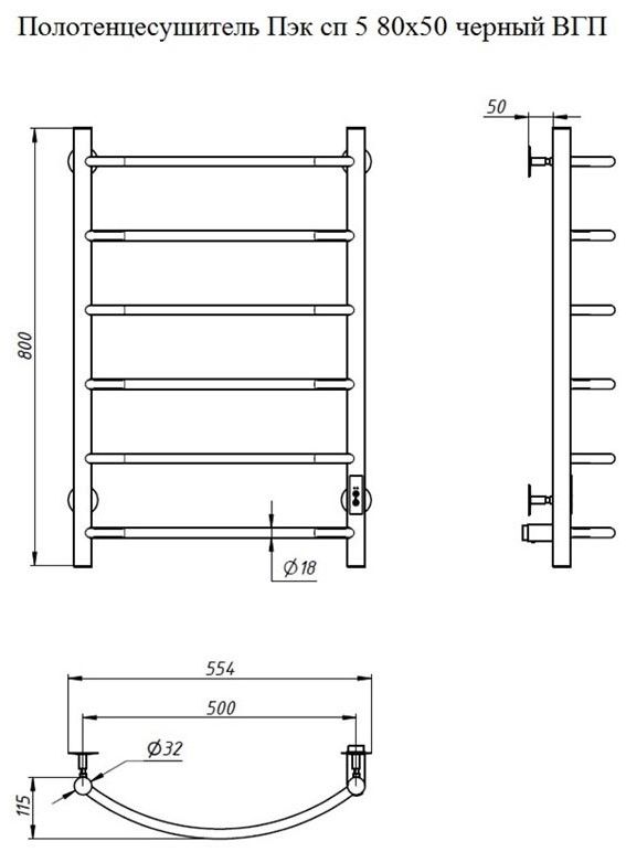 Электрический полотенцесушитель Тругор Пэк сп 5 80x50см чёрный Пэксп5/8050черныйВГП купить