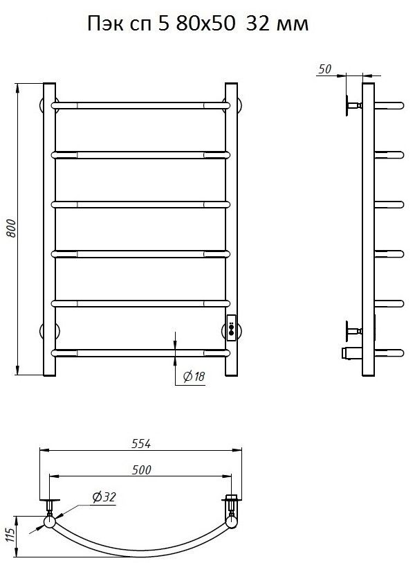ПЭК — Полотенцесушитель электрический кабельный. Изделие производится из нержавеющей стали AISI 201. Вертикальные трубы d -32 мм., для горизонтальных вставок используется труба d — 18 мм.Нагревательным элементом в полотенцесушителе является греющий кабель — аналог «теплого пола», кабель заправляется внутрь каждой трубы и передает тепло на поверхность изделия. Во включенном состоянии постоянно поддерживается температура 50-600.Экономичность: Полотенцесушитель снабжен панелью управления. Кнопка включения/выключения и таймер на 2 часа и 4 часа, который позволяет включать изделие на ограниченное время. Эта функция дает возможность экономить электричество.Мощность электрического прибора порядка 60W при стоимости 1 кВт — 5 руб несложно посчитать: 60W х 24 = 1,5 кВт в сутки. Стоимость эксплуатации изделия за сутки 1,5 кВт х 5 руб. = 7,5 руб. Максимальный расход электричества за месяц примерно 225 руб. При условии если сушка работает круглосуточно.Удобство монтажа: Полотенцесушитель крепится к стене на четыре держателя. Универсальное исполнение изделия позволяет подключить его, как справа, так и слева.Скрытое подключение: Благодаря приваренным в нижней части вертикальных труб двум распаячным коробкам, в которых соединяется электропроводка, возможно скрытое подключение к электричеству слева и справа.Подключение в розетку: В комплекте также имеется шнур с вилкой, который будет необходим при подключении к розетке.Панель включения:РЕЖИМ №1 — постоянный нагревРЕЖИМ №2 — работа в течение 2 часов с последующим отключением.РЕЖИМ №3 — работа в течение 4 часов с последующим отключением.