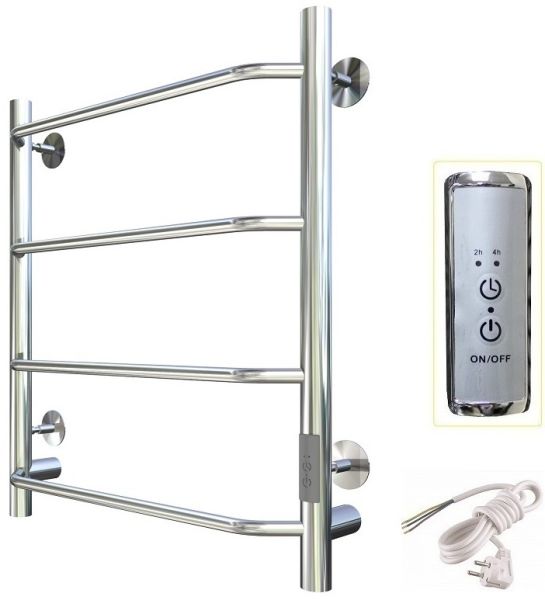 ПЭК — Полотенцесушитель электрический кабельный. Изделие производится из нержавеющей стали AISI 201. Вертикальные трубы d -32 мм., для горизонтальных вставок используется труба d — 18 мм.Нагревательным элементом в полотенцесушителе является греющий кабель — аналог «теплого пола», кабель заправляется внутрь каждой трубы и передает тепло на поверхность изделия. Во включенном состоянии постоянно поддерживается температура 50-600.Экономичность: Полотенцесушитель снабжен панелью управления. Кнопка включения/выключения и таймер на 2 часа и 4 часа, который позволяет включать изделие на ограниченное время. Эта функция дает возможность экономить электричество.Мощность электрического прибора порядка 60W при стоимости 1 кВт — 5 руб несложно посчитать: 60W х 24 = 1,5 кВт в сутки. Стоимость эксплуатации изделия за сутки 1,5 кВт х 5 руб. = 7,5 руб. Максимальный расход электричества за месяц примерно 225 руб. При условии если сушка работает круглосуточно.Удобство монтажа: Полотенцесушитель крепится к стене на четыре держателя. Универсальное исполнение изделия позволяет подключить его, как справа, так и слева.Скрытое подключение: Благодаря приваренным в нижней части вертикальных труб двум распаячным коробкам, в которых соединяется электропроводка, возможно скрытое подключение к электричеству слева и справа.Подключение в розетку: В комплекте также имеется шнур с вилкой, который будет необходим при подключении к розетке.Панель включения:РЕЖИМ №1 — постоянный нагревРЕЖИМ №2 — работа в течение 2 часов с последующим отключением.РЕЖИМ №3 — работа в течение 4 часов с последующим отключением.