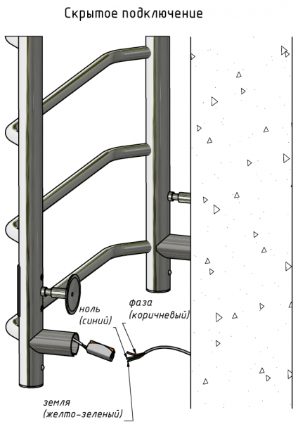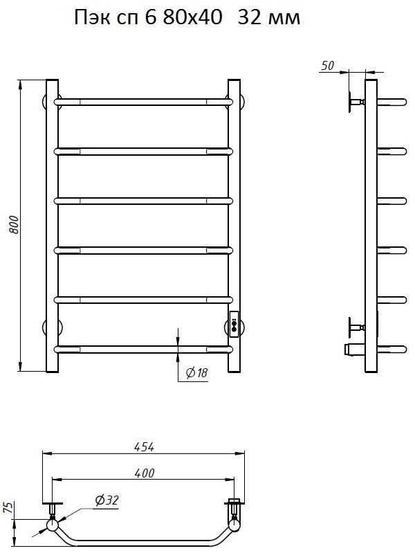 ПЭК — Полотенцесушитель электрический кабельный. Изделие производится из нержавеющей стали AISI 201. Вертикальные трубы d -32 мм., для горизонтальных вставок используется труба d — 18 мм.Нагревательным элементом в полотенцесушителе является греющий кабель — аналог «теплого пола», кабель заправляется внутрь каждой трубы и передает тепло на поверхность изделия. Во включенном состоянии постоянно поддерживается температура 50-600.Экономичность: Полотенцесушитель снабжен панелью управления. Кнопка включения/выключения и таймер на 2 часа и 4 часа, который позволяет включать изделие на ограниченное время. Эта функция дает возможность экономить электричество.Мощность электрического прибора порядка 60W при стоимости 1 кВт — 5 руб несложно посчитать: 60W х 24 = 1,5 кВт в сутки. Стоимость эксплуатации изделия за сутки 1,5 кВт х 5 руб. = 7,5 руб. Максимальный расход электричества за месяц примерно 225 руб. При условии если сушка работает круглосуточно.Удобство монтажа: Полотенцесушитель крепится к стене на четыре держателя. Универсальное исполнение изделия позволяет подключить его, как справа, так и слева.Скрытое подключение: Благодаря приваренным в нижней части вертикальных труб двум распаячным коробкам, в которых соединяется электропроводка, возможно скрытое подключение к электричеству слева и справа.Подключение в розетку: В комплекте также имеется шнур с вилкой, который будет необходим при подключении к розетке.Панель включения:РЕЖИМ №1 — постоянный нагревРЕЖИМ №2 — работа в течение 2 часов с последующим отключением.РЕЖИМ №3 — работа в течение 4 часов с последующим отключением.