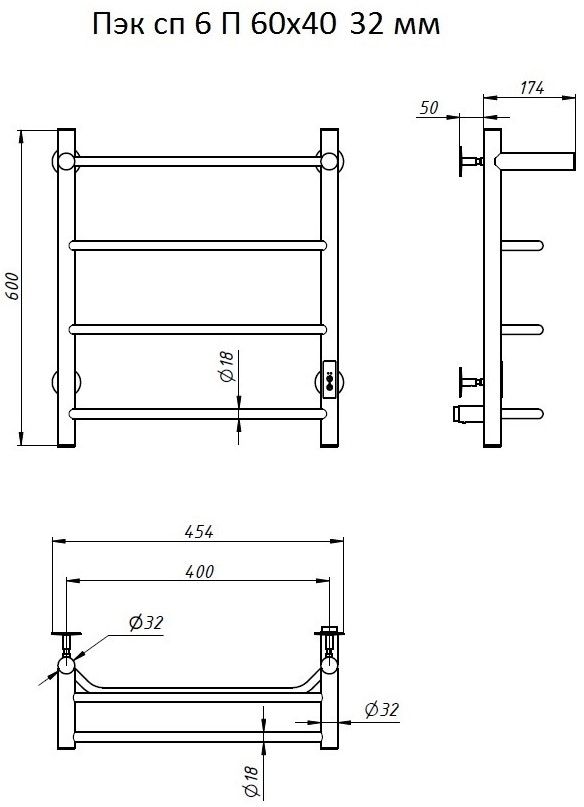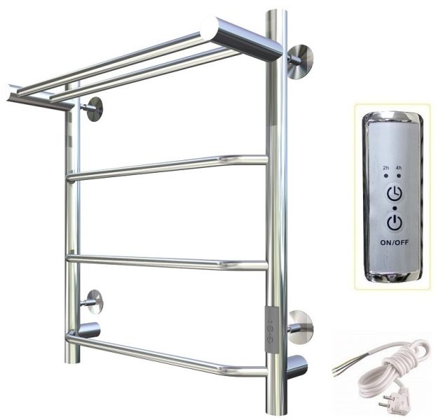 ПЭК — Полотенцесушитель электрический кабельный. Изделие производится из нержавеющей стали AISI 201. Вертикальные трубы d -32 мм., для горизонтальных вставок используется труба d — 18 мм.Нагревательным элементом в полотенцесушителе является греющий кабель — аналог «теплого пола», кабель заправляется внутрь каждой трубы и передает тепло на поверхность изделия. Во включенном состоянии постоянно поддерживается температура 50-600.Экономичность: Полотенцесушитель снабжен панелью управления. Кнопка включения/выключения и таймер на 2 часа и 4 часа, который позволяет включать изделие на ограниченное время. Эта функция дает возможность экономить электричество.Мощность электрического прибора порядка 60W при стоимости 1 кВт — 5 руб несложно посчитать: 60W х 24 = 1,5 кВт в сутки. Стоимость эксплуатации изделия за сутки 1,5 кВт х 5 руб. = 7,5 руб. Максимальный расход электричества за месяц примерно 225 руб. При условии если сушка работает круглосуточно.Удобство монтажа: Полотенцесушитель крепится к стене на четыре держателя. Универсальное исполнение изделия позволяет подключить его, как справа, так и слева.Скрытое подключение: Благодаря приваренным в нижней части вертикальных труб двум распаячным коробкам, в которых соединяется электропроводка, возможно скрытое подключение к электричеству слева и справа.Подключение в розетку: В комплекте также имеется шнур с вилкой, который будет необходим при подключении к розетке.Панель включения:РЕЖИМ №1 — постоянный нагревРЕЖИМ №2 — работа в течение 2 часов с последующим отключением.РЕЖИМ №3 — работа в течение 4 часов с последующим отключением.