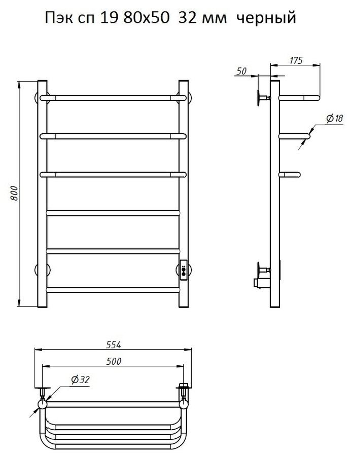 Электрический полотенцесушитель Тругор Пэксп19/8050 черный ВГП Пэк сп 19 80x50см чёрный купить