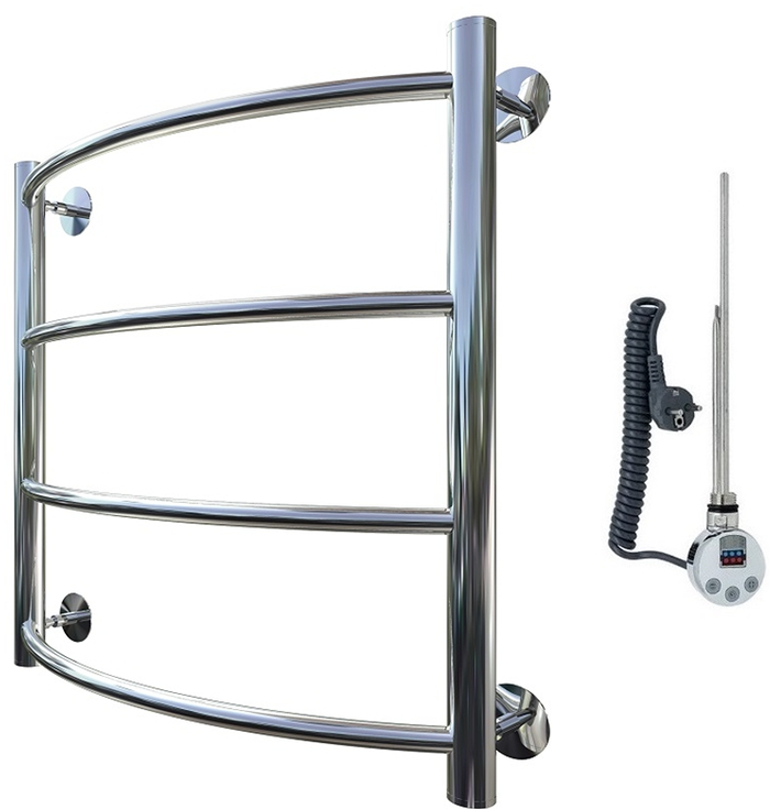 Внимание! Для скрытого монтажа электропроводки необходимо приобрести комплект скрытого подключения.Полотенцесушитель электрический комплектуется ТЭНом с терморегулятором и таймером.Изделие производится из нержавеющей стали AISI 201. Вертикальные трубы d -32 мм., для горизонтальных вставок используется труба d — 18 мм.Нагревательным элементом в полотенцесушителе является ТЭН. Полотенцесушитель заполнен бытовым антифризомЭкономичность: ТЭН нагревает антифриз до нужной температуры и выключается, далее при остывании полотенцесушителя он включается опять. Таким образом он работает не постоянно и получается, что ТЭН потребляет электричество не 300 Вт, а порядка 100 — 150 ВтМощность электрического прибора порядка 100 Вт при стоимости 1 Вт — 5 руб несложно посчитать: 100Вт х 24 = 2,4 кВт в сутки. Стоимость эксплуатации изделия за сутки 2,4 кВт х 5 руб. = 12 руб. При максимальной температуре расход электричества за 30 дней составит порядка 360 руб. При условии если сушка работает круглосуточно на максимальной температуре.Удобство монтажа: Полотенцесушитель крепится к стене на четыре держателя. Изначально ТЭН не установлен в полотенцесушитель для безопасной транспортировки, его можно установить, как справа, так и слева предварительно перевернув полотенцесушитель вверх ногами и выкрутив заглушку с нужной стороны на место в которое установится ТЭН.Примечание. Внимательно изучите инструкцию по установке ТЭНа!Скрытое подключение: Для скрытого монтажа электропроводки необходимо приобрести комплект скрытого подключения.Подключение в розетку: В комплекте с ТЭНом имеется шнур с вилкой, который будет необходим при подключении к розетке.