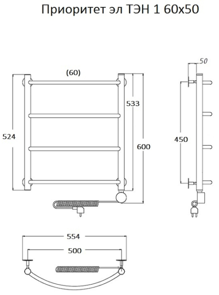Электрический полотенцесушитель Тругор Приоритет 1 60x50см хром Приоритет1/элТЭН6050 купить