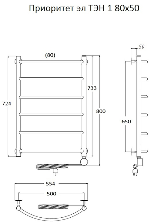 Электрический полотенцесушитель Тругор Приоритет 1 80x50см хром Приоритет1/элТЭН8050 купить