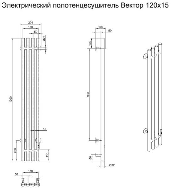 Электрический полотенцесушитель Тругор Вектор ПэкспВектор12015чернВГП 15x120см чёрный купить