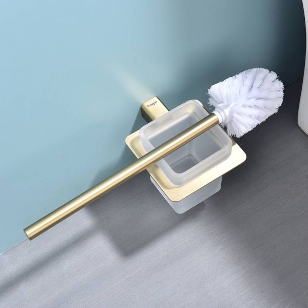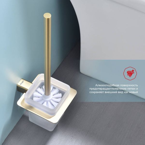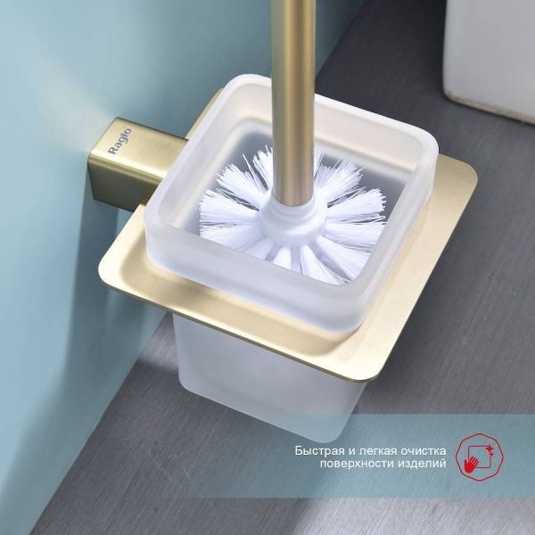 Raglo R301.10.03 Ершик для унитаза настенный с держателем. Форма квадратная, цвет - сатиновое золото, полуматовое покрытие. Крепление в комплекте, в комплекте две насадки!