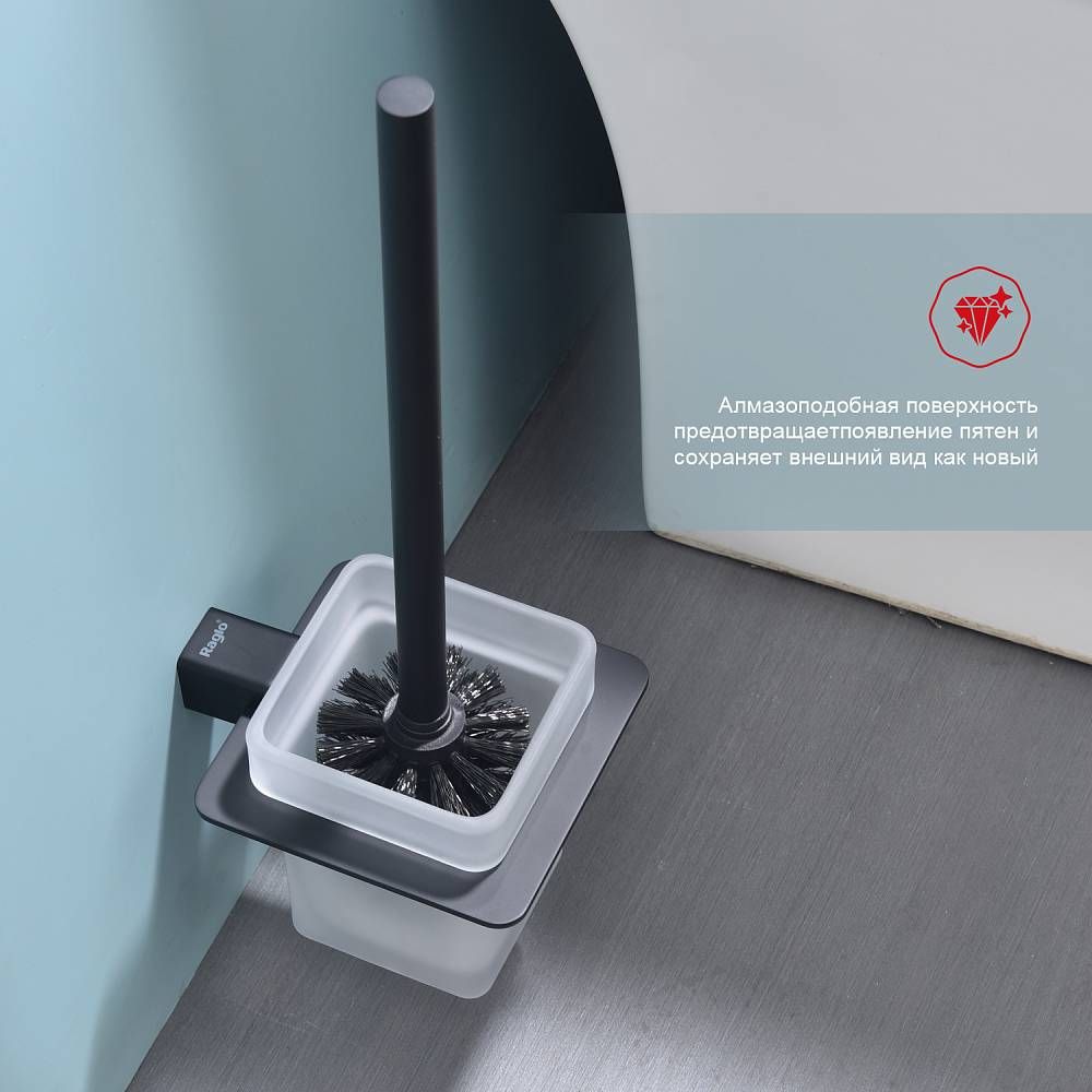 Raglo R301.10.06 Ершик для унитаза настенный с держателем. Форма квадратная, цвет - черный, полуматовое покрытие. Крепление в комплекте, в комплекте две насадки!