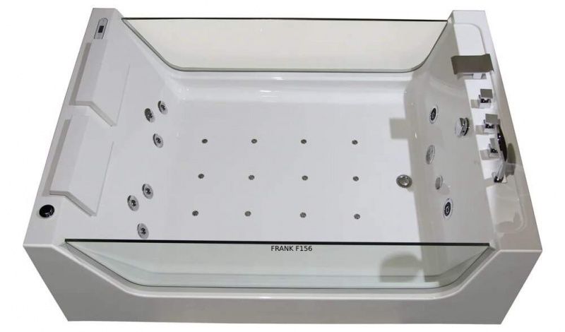 Все гидромассажные ванны Frank поставляются в максимальной комплектации и имеют множества функций. Ванна с гидромассажем Frank F156 отдельностоящая с аэромассажем, гидромассажем, турбомассажем. В ногах установлен многоцветный подводный фонарь. Также ванна снабжена системой дезинфекции. Форсунки расположены в ванне с учётом эргономики тела и способствуют максимальному охвату поверхности тела при работе аэро- и гидромассажных двигателей. Вся ванна сделана из литьевого акрила. Стоит система слива остатков воды из форсунков. Используется высокопрочное стекло 10 мм.с антибактериальным покрытием без металлической окантовки, что придаёт ванне современный дизайн. Уникальный дизайн ванны с прозрачными стеклянными боковыми стенками. Идеально подходит для совместных водных процедур с любимым человеком.ХарактеристикиМодель F156 (стёкла без металлической окантовки)