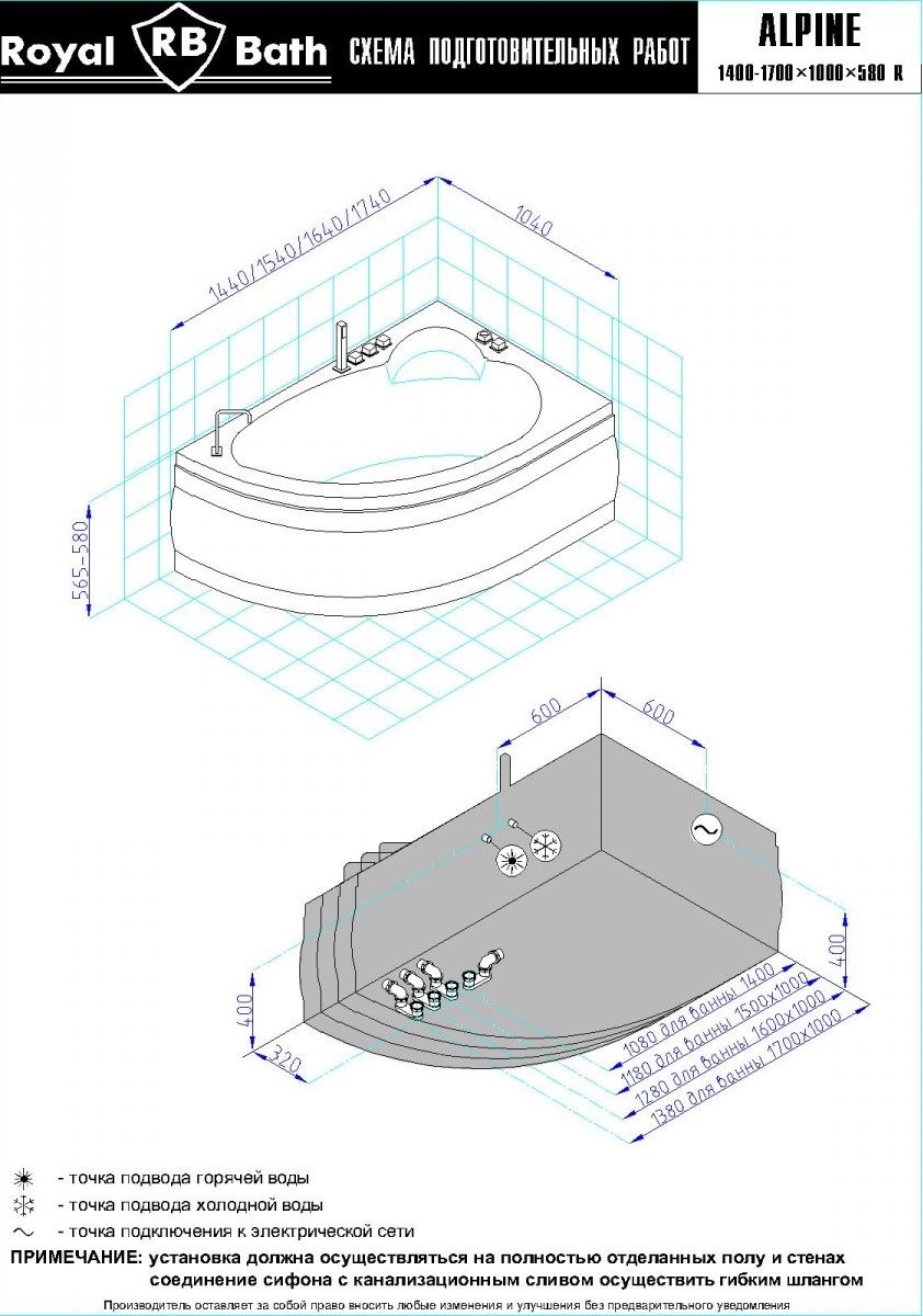 Акриловая ванна Royal Bath - идеальный выбор для создания атмосферы релакса и умиротворения, как в просторной в ванной комнате, так и в комнатном санузле. Основным преимуществом ванны из акрила считается её малый вес, высокая гигиеничность данного материала и низкая теплопроводность, долго сохраняющая комфортную температуру воды.Форма ванны Royal Bath замечательно подойдет к любому интерьерному решению, в различных вариантах размещения внутри ванной комнаты. Пристенная установка - это наиболее традиционный вид установки, а при использовании декоративного экрана пространство под ванной можно использовать как место хранения моющих средств. Оптимальная глубина позволяет принимать ванну с максимальным комфортом и полным расслаблением. Ванна Royal Bath выполнена со строгим соблюдением всех значительных элементов современного стиля.Благодаря тому, что родина бренда Royal Bath - Россия, можно смело быть уверенным в непревзойденном качестве и долговечности ванны, так как производство полностью соответствует стандартам качества. Акриловая ванна Royal Bath - это незаменимый, основной элемент любой ванной комнаты, без которого невозможно обойтись, ни в многоквартирном доме, ни в загородном коттедже.Комплектация гидромассажной ванны:- акриловая ванна Alpine 160x100x58;- каркас сварной к ванне Alpine 160;- панель к ванне Alpine 160;- гидромассажная система на 6 форсунок;- слив-перелив для ванны полуавтомат 60 см.Ожидаемый срок поставки 7 дней.Обратите внимание: данная позиция поставляется под заказ! Товар поставляется по 100%-ной предоплате.Данный товар является заказным и имеет индивидуально-определенные свойства.