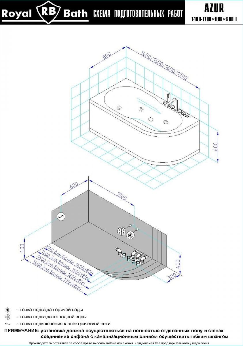 Акриловая ванна Royal Bath - идеальный выбор для создания атмосферы релакса и умиротворения, как в просторной в ванной комнате, так и в комнатном санузле. Основным преимуществом ванны из акрила считается её малый вес, высокая гигиеничность данного материала и низкая теплопроводность, долго сохраняющая комфортную температуру воды.Форма ванны Royal Bath замечательно подойдет к любому интерьерному решению, в различных вариантах размещения внутри ванной комнаты. Пристенная установка - это наиболее традиционный вид установки, а при использовании декоративного экрана пространство под ванной можно использовать как место хранения моющих средств. Оптимальная глубина позволяет принимать ванну с максимальным комфортом и полным расслаблением. Ванна Royal Bath выполнена со строгим соблюдением всех значительных элементов современного стиля.Благодаря тому, что родина бренда Royal Bath - Россия, можно смело быть уверенным в непревзойденном качестве и долговечности ванны, так как производство полностью соответствует стандартам качества. Акриловая ванна Royal Bath - это незаменимый, основной элемент любой ванной комнаты, без которого невозможно обойтись, ни в многоквартирном доме, ни в загородном коттедже.Комплектация гидромассажной ванны:- акриловая ванна Azur 170x80x60;- каркас сварной к ванне Azur 170;- панель к ванне Azur 170;- гидромассажная система на 5 форсунок;- слив-перелив для ванны полуавтомат 60 см.Ожидаемый срок поставки 7 дней.Обратите внимание: данная позиция поставляется под заказ! Товар поставляется по 100%-ной предоплате.Данный товар является заказным и имеет индивидуально-определенные свойства.