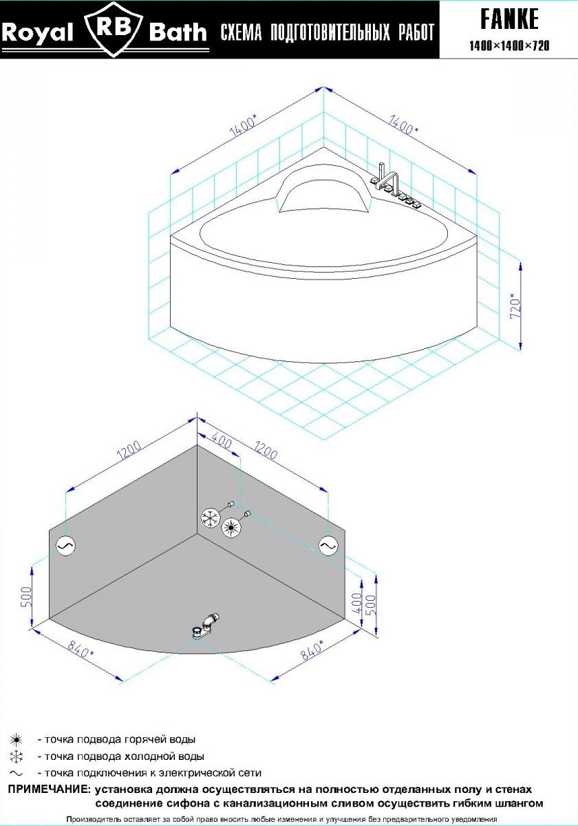 Акриловая ванна Royal Bath - идеальный выбор для создания атмосферы релакса и умиротворения, как в просторной в ванной комнате, так и в комнатном санузле. Основным преимуществом ванны из акрила считается её малый вес, высокая гигиеничность данного материала и низкая теплопроводность, долго сохраняющая комфортную температуру воды.Форма ванны Royal Bath замечательно подойдет к любому интерьерному решению, в различных вариантах размещения внутри ванной комнаты. Пристенная установка - это наиболее традиционный вид установки, а при использовании декоративного экрана пространство под ванной можно использовать как место хранения моющих средств. Оптимальная глубина позволяет принимать ванну с максимальным комфортом и полным расслаблением. Ванна Royal Bath выполнена со строгим соблюдением всех значительных элементов современного стиля.Благодаря тому, что родина бренда Royal Bath - Россия, можно смело быть уверенным в непревзойденном качестве и долговечности ванны, так как производство полностью соответствует стандартам качества. Акриловая ванна Royal Bath - это незаменимый, основной элемент любой ванной комнаты, без которого невозможно обойтись, ни в многоквартирном доме, ни в загородном коттедже.Комплектация гидромассажной ванны:- акриловая ванна Fanke 140x140x65;- каркас сварной к ванне Fanke 140;- панель фронтальная к ванне Fanke 140;- гидромассажная система на 4 форсунки;- спинной массаж на 6 форсунок;- аэромассаж с хромотерапией на 8 форсунок;- слив-перелив для ванны полуавтомат 60 см.Ожидаемый срок поставки 7 дней.Обратите внимание: данная позиция поставляется под заказ! Товар поставляется по 100%-ной предоплате.Данный товар является заказным и имеет индивидуально-определенные свойства.