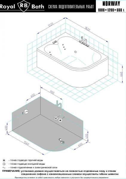 Акриловая ванна Royal Bath - идеальный выбор для создания атмосферы релакса и умиротворения, как в просторной в ванной комнате, так и в комнатном санузле. Основным преимуществом ванны из акрила считается её малый вес, высокая гигиеничность данного материала и низкая теплопроводность, долго сохраняющая комфортную температуру воды.Форма ванны Royal Bath замечательно подойдет к любому интерьерному решению, в различных вариантах размещения внутри ванной комнаты. Пристенная установка - это наиболее традиционный вид установки, а при использовании декоративного экрана пространство под ванной можно использовать как место хранения моющих средств. Оптимальная глубина позволяет принимать ванну с максимальным комфортом и полным расслаблением. Ванна Royal Bath выполнена со строгим соблюдением всех значительных элементов современного стиля.Благодаря тому, что родина бренда Royal Bath - Россия, можно смело быть уверенным в непревзойденном качестве и долговечности ванны, так как производство полностью соответствует стандартам качества. Акриловая ванна Royal Bath - это незаменимый, основной элемент любой ванной комнаты, без которого невозможно обойтись, ни в многоквартирном доме, ни в загородном коттедже.Комплектация гидромассажной ванны:- акриловая ванна Norway 180x120x66 с каркасом;- панель фронтальная к ванне Norway;- гидромассажная система на 6 форсунок;- спинной массаж на 6 форсунок;- аэромассаж с хромотерапией на 8 форсунок;- слив-перелив для ванны полуавтомат 60 см.Ожидаемый срок поставки 7 дней.Обратите внимание: данная позиция поставляется под заказ! Товар поставляется по 100%-ной предоплате.Данный товар является заказным и имеет индивидуально-определенные свойства.