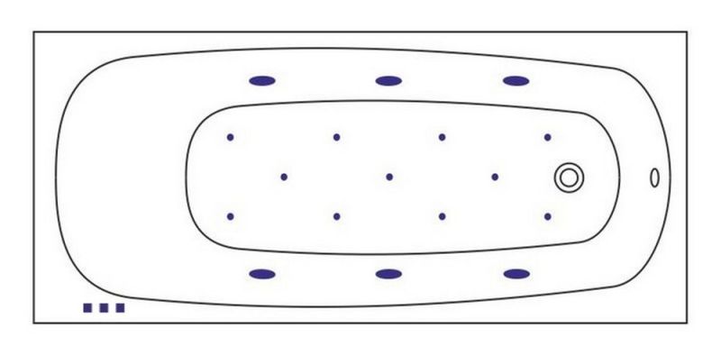 - Аэромассажная система (11 форсунок AERO-JET) с функцией регулировки интенсивности массажа;
