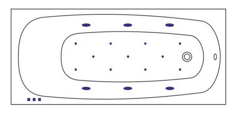 - Аэромассажная система (11 форсунок AERO-JET) с функцией регулировки интенсивности массажа;