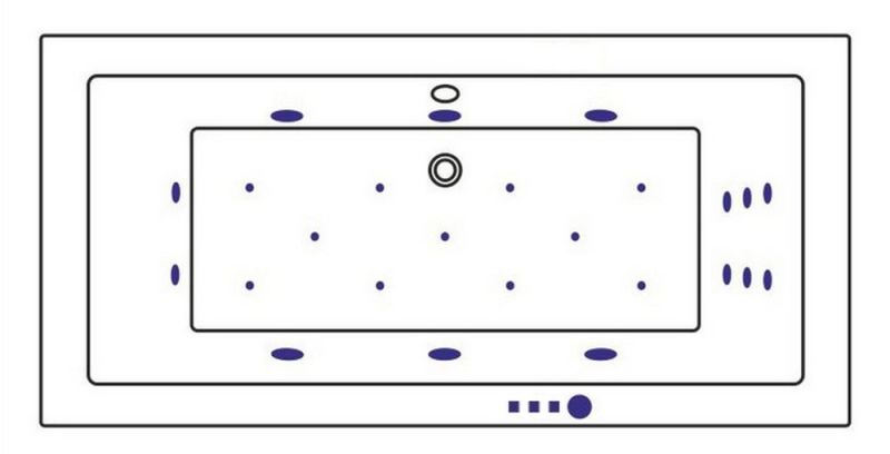 - Аэромассажная система (11 форсунок AERO-JET) с функцией регулировки интенсивности массажа;