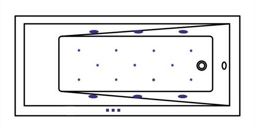 - Аэромассажная система (11 форсунок AERO-JET) с функцией регулировки интенсивности массажа;