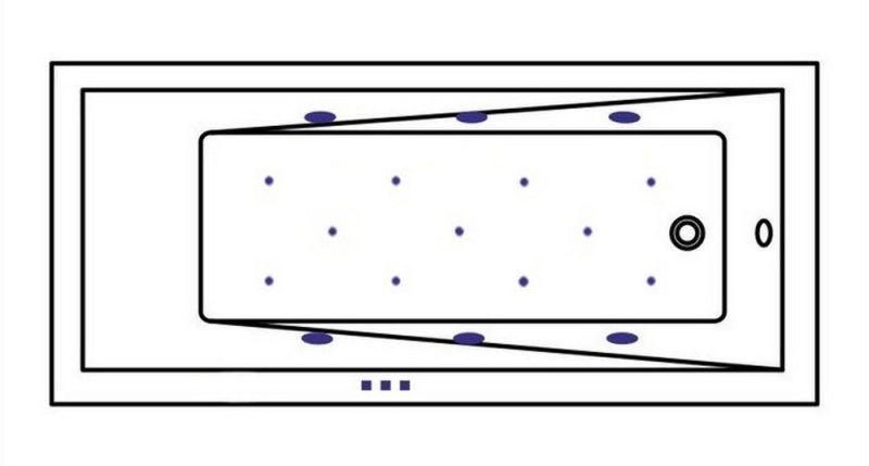 - Аэромассажная система (11 форсунок AERO-JET) с функцией регулировки интенсивности массажа;