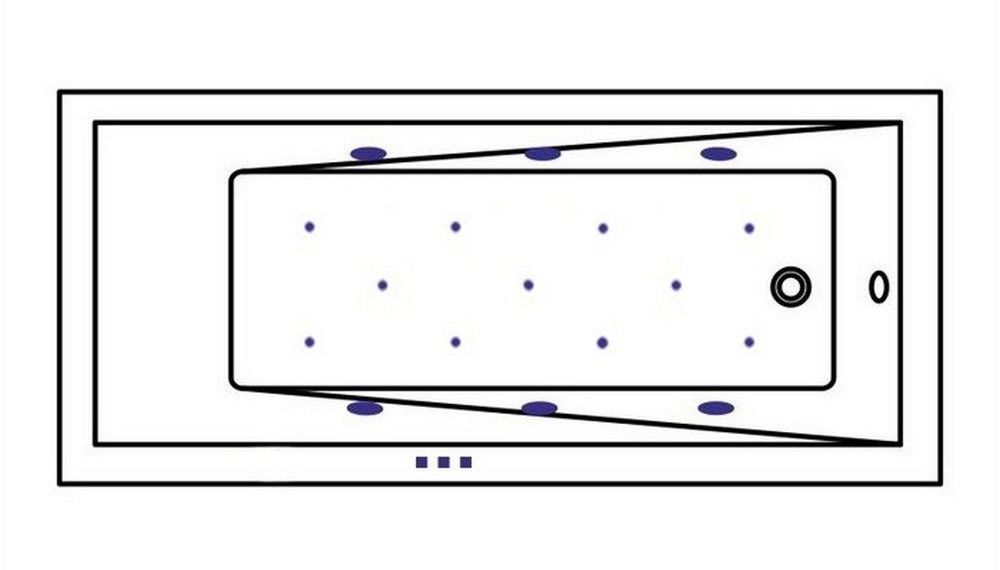 - Аэромассажная система (11 форсунок AERO-JET) с функцией регулировки интенсивности массажа;