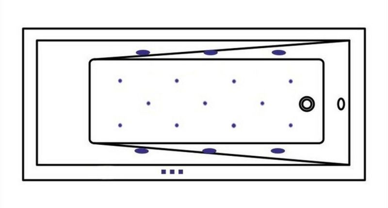 - Аэромассажная система (11 форсунок AERO-JET) с функцией регулировки интенсивности массажа;