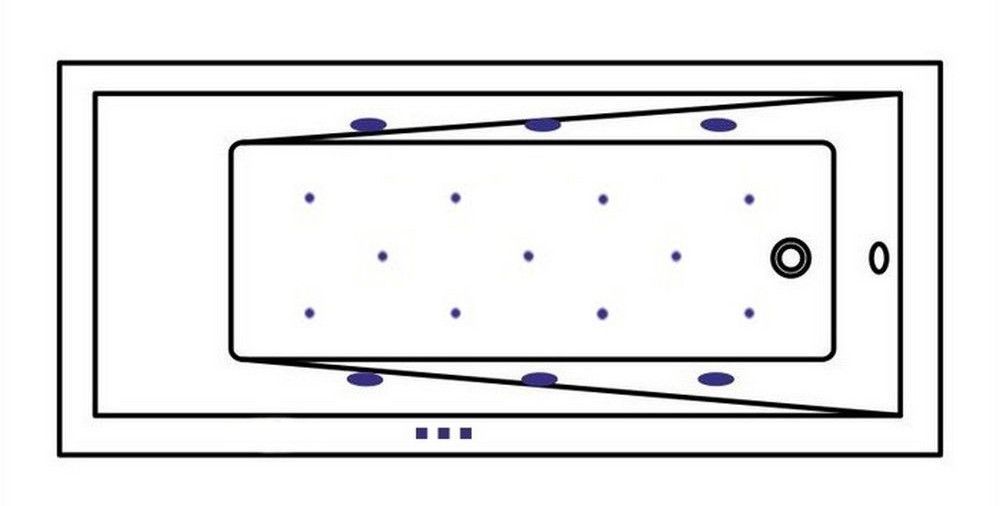 - Аэромассажная система (11 форсунок AERO-JET) с функцией регулировки интенсивности массажа;
