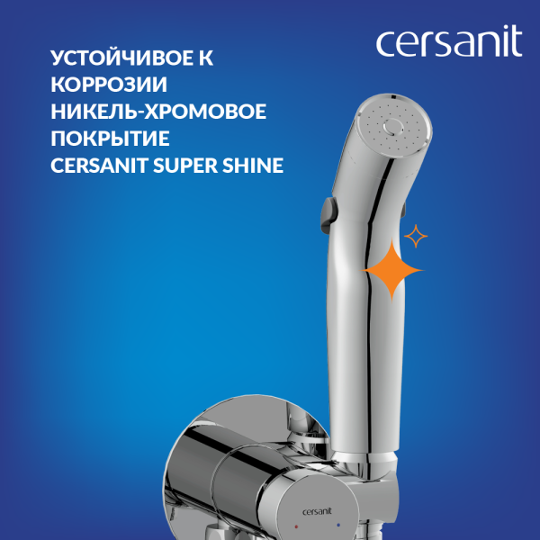 • Стойкое никель-хромовое покрытие Cersanit Super Shine обеспечивает смесителю зеркальный блеск в течение всего срока службы изделия.