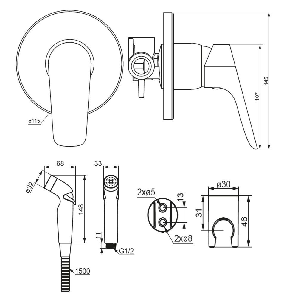 Гигиенический душ Damixa Jupiter 777510300 черныйГигиенический душ. Цвет-черный матовый. В комплект поставки входит: корпус смесителя, гигиенический душ, держатель для гигиенического душа, шланг с прокладками, инструкция изделия