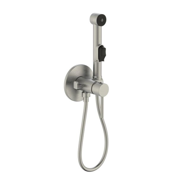 Встраиваемый смеситель с гигиеническим душем со стильным сатиновым покрытием подойдет для современной ванной, привнесет в нее комфорт и эстетику. Имеет крючок для полотенца; крючок и держатель для лейки при необходимости можно поменять местами. Гигиеническая лейка и гладкий душевой шланг длиной 1,2 метра в комплекте.