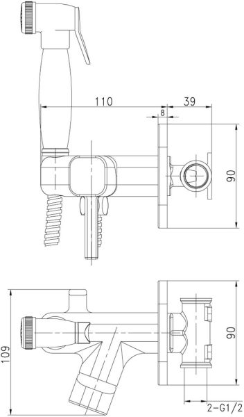 Оснащение: душевой шланг / держатель для душа / крючок