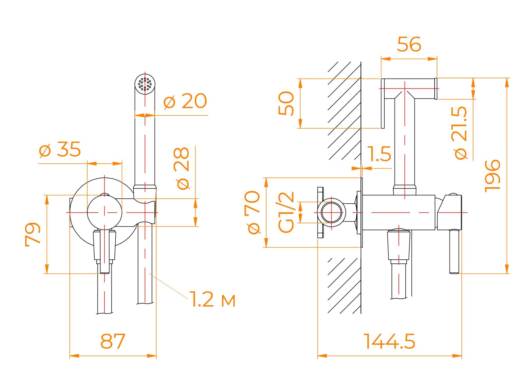 Гигиенический душ — это компактная альтернатива биде. Если у вас маленький туалет, где нет возможности установить еще одну сантехническую конструкцию, на выручку приходит данный аксессуар. Он выполнен в виде душевой лейки с клавишей (кнопкой) и шланга, которая фиксируется на смесителе. Смеситель состоит из высококачественной латуни встраивается в стену. Устанавливается рядом с унитазом и помогает поддерживать личную гигиену.