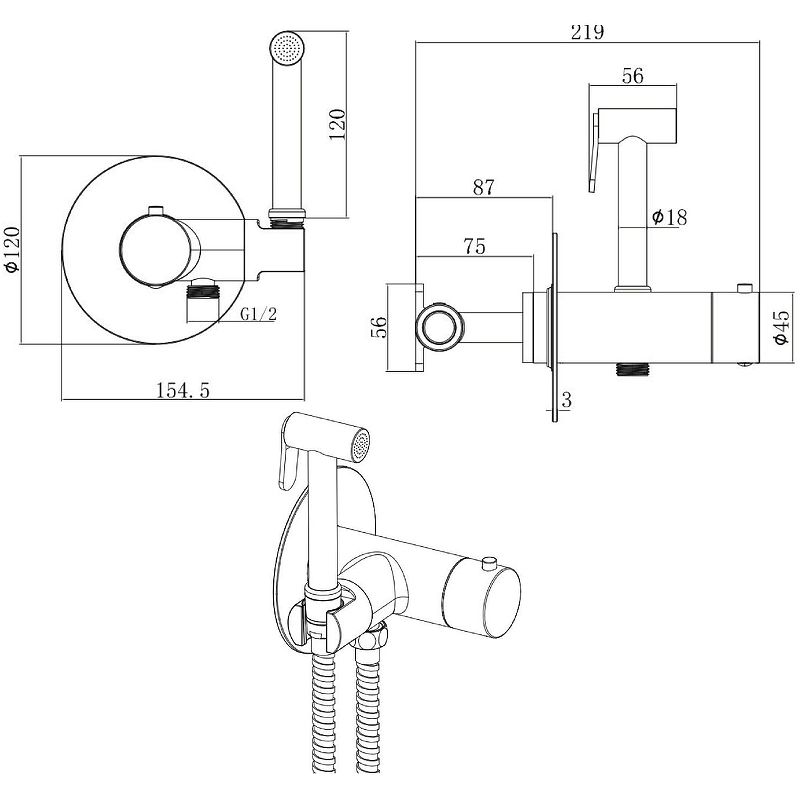 Гигиенический душ со смесителем Allen Brau Thermo rund 5.60001-31 с термостатом.Характеристики:Цвет: черный матовый.