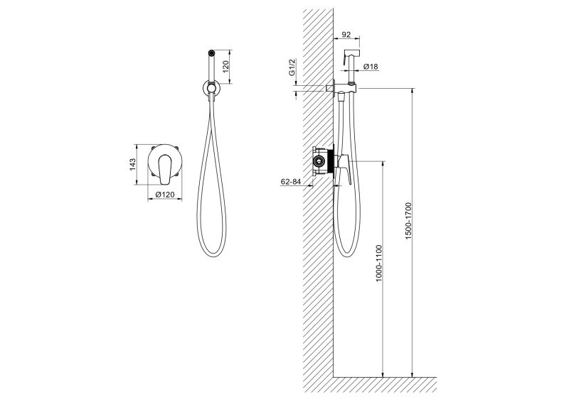 Тип дивертора: керамический картриджСтандарт подводки: 1/2"Тип управления: рычажныйДлина шланга для гигиенического душа (см): 120Назначение: гигиенический душКоличество режимов ручного душа: 1Количество монтажных отверстий: 1 отверстиеПодключение к системе водоснабжения: скрытая частьМеханизм: керамический картридж Citec, ИспанияДиаметр картриджа (мм): 35
