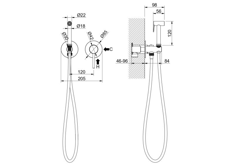 • Смеситель для гигиенического душа (внешняя и скрытая часть)