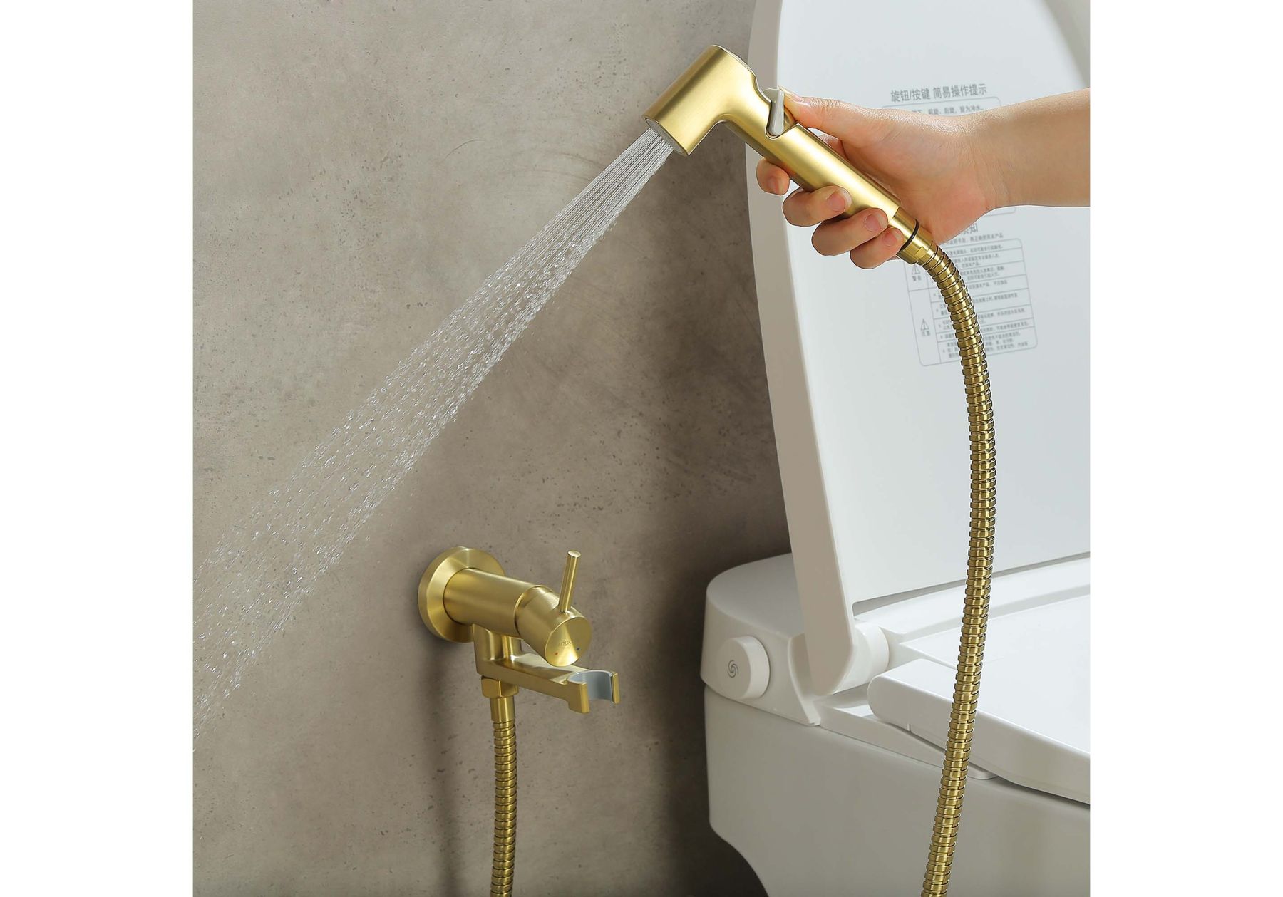 • Гигиеническая лейка оснащена нажимным механизмом для остановки потока воды