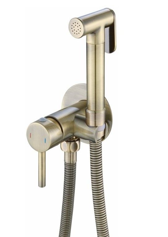 Гигиенический душ со смесителем бренда Haiba.Цвет: бронза.В комплект входят: держатель для гигиенической лейки, лейка, шланг.Керамический картридж 30 мм.Металлическая рукоятка.Душевой шланг 1 метр.Душевая лейка на 1 режим.