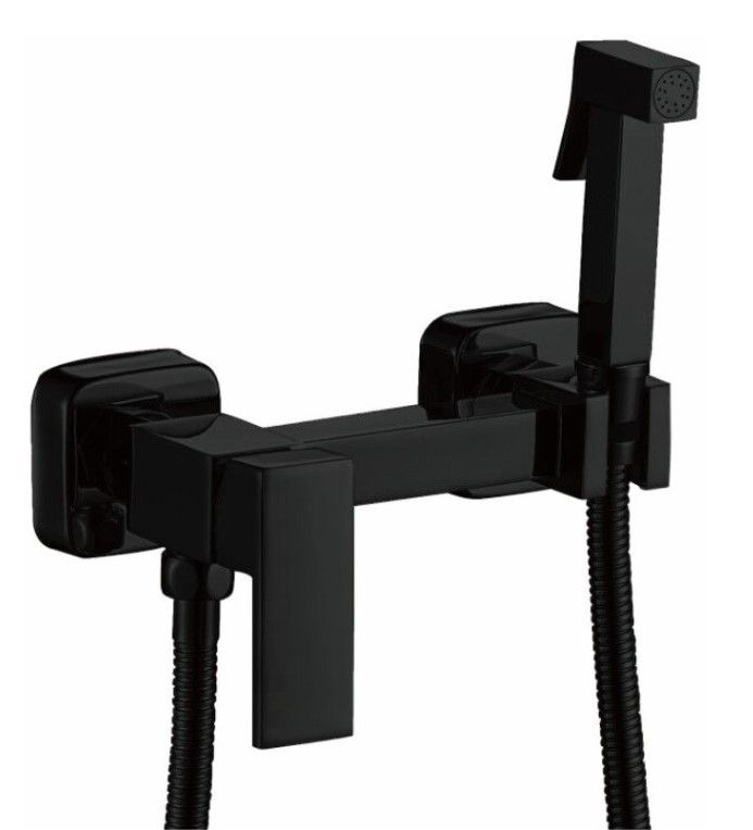Гигиенический душ со смесителем бренда Haiba.Цвет: черный.В комплект входят: держатель для гигиенической лейки, лейка, шланг, эксцентрики.Керамический картридж 30 мм.Металлическая рукоятка.Душевой шланг 1 метр.Душевая лейка на 1 режим.