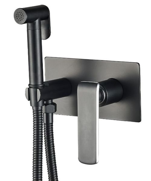 Гигиенический душ со смесителем бренда Haiba.Цвет: черный.В комплект входят: держатель для гигиенической лейки, лейка, шланг.Душевой шланг 1 метр.Душевая лейка на 1 режим.