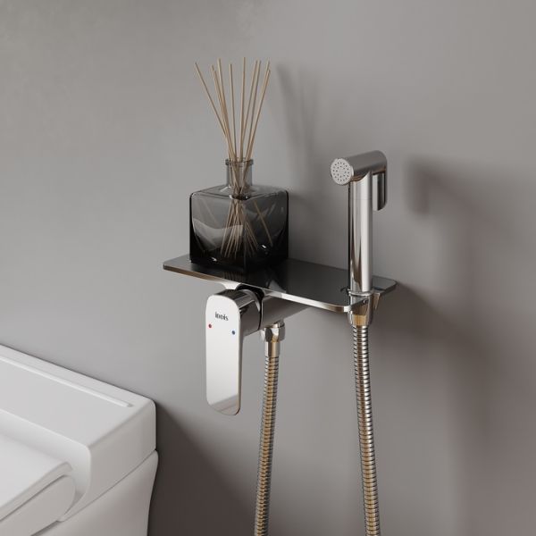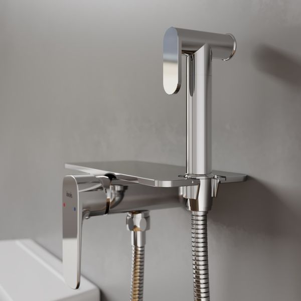 Коллекция Axes соединяет в себе ультрамодный дизайн и удивительно продуманный конструктив, что позволяет сделать гигиенические процедуры еще более комфортными. Смеситель Axes отличается легкостью управления: гигиенический душ удобно ложится в руку, эргономичная ручка позволяет легко регулировать температуру и напор воды. Компактная лейка фиксируется непосредственно в самом смесителе, экономя пространство. Скрытый монтаж в стену позволяет сохранить эстетичный внешний вид любого современного санузла. Смеситель Axes имеет полочку из прочной латуни – на ней будет удобно разместить телефон или диффузор.