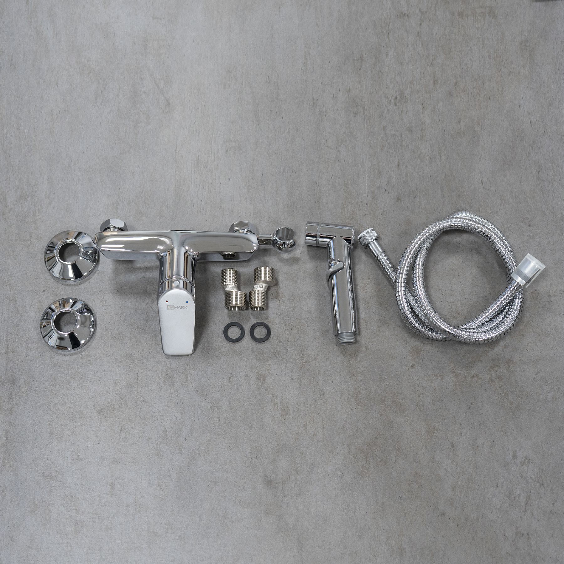 - Аксессуары в комплекте: лейка гигиенического душа с регулятором напора воды, душевой шланг 1,2 м