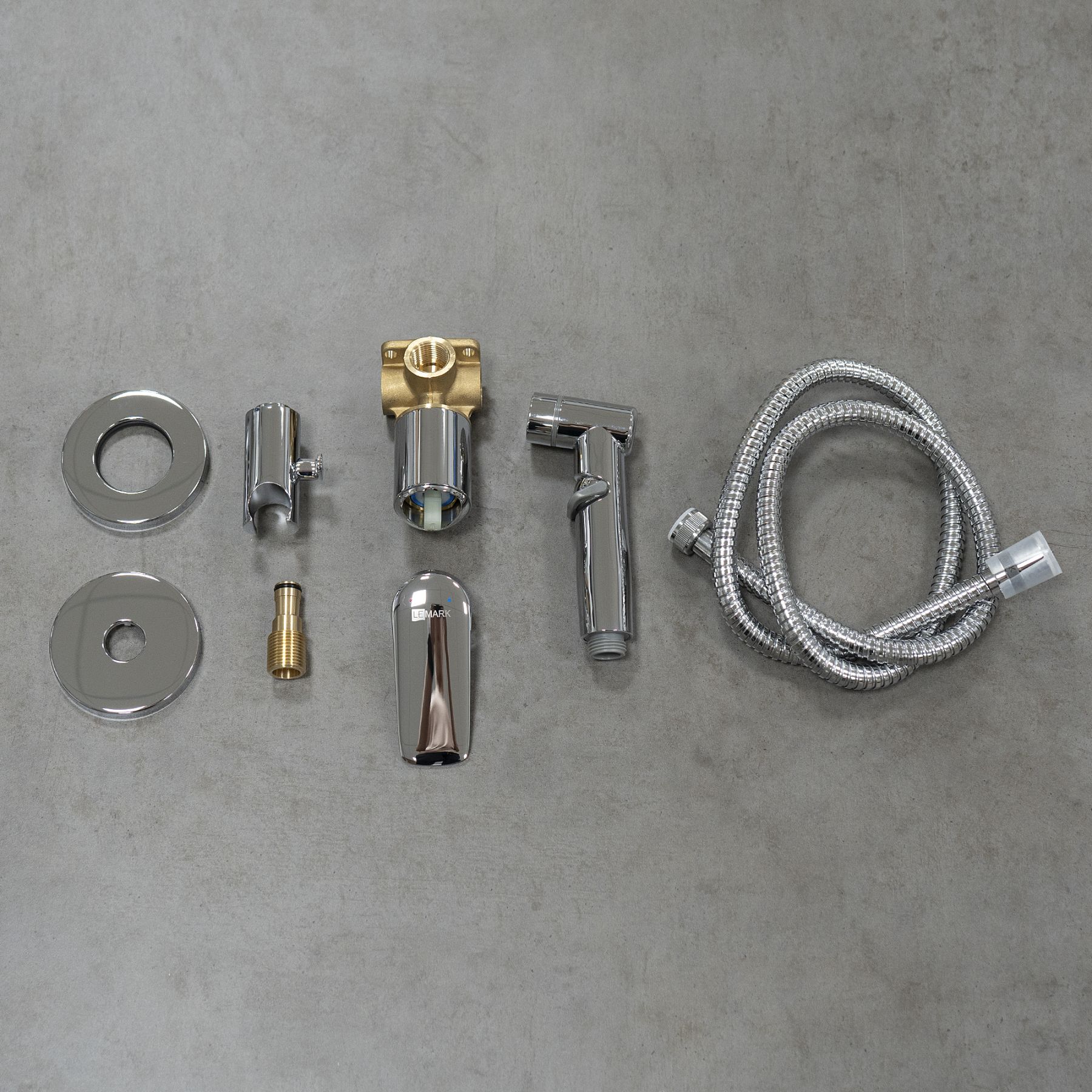 - Аксессуары в комплекте: лейка гигиенического душа с регулятором напора воды, подключение для душевого шланга с креплением для лейки, душевой шланг 1,2 м