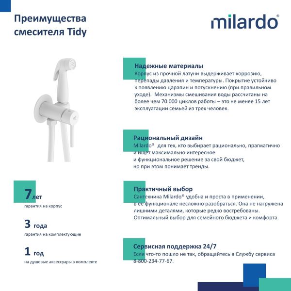 Гигиенический душ со смесителем Milardo Tidy белый 001WTR0M08 Гигиенический душ со смесителем Milardo Tidy белый 001WTR0M08 Казань 5844.30 7590.00 Milardo