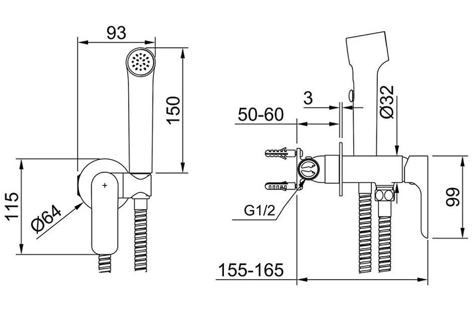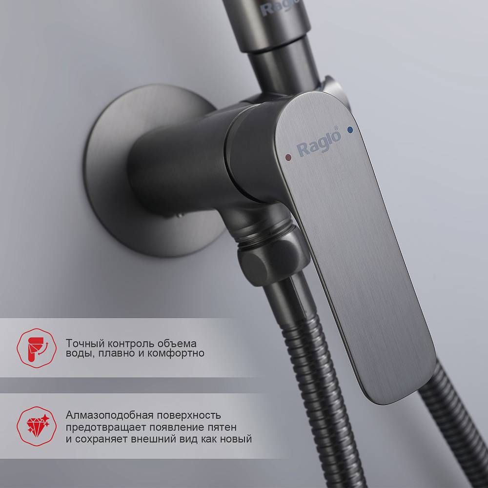 Гигиенический душ со смесителем встраиваемый Raglo R03.52.09, графит