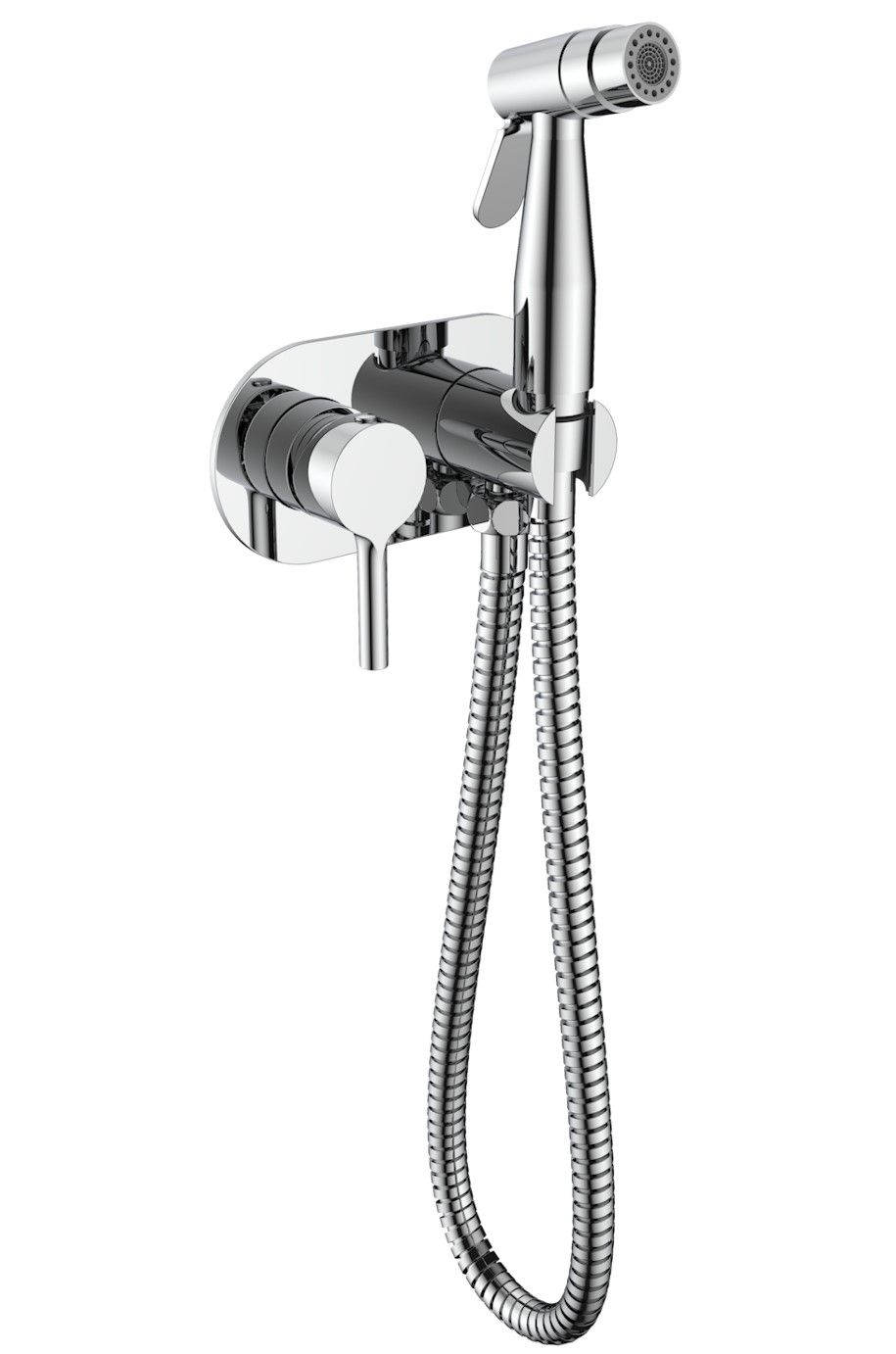 Качественный и современный смеситель с гигиеническим душем R20.52, одна рукоять для того, чтобы регулировать напор воды. Смеситель для биде устанавливается прямо внутрь стены, что позволит скрыть функциональные элементы, спрятать некоторые элементы монтажа. Душевая лейка работает в одном режиме. Высокопрочный душевой шланг 1200 мм в оплетке двойного вальцевания с трубкой из синтетического каучука вращающийся на 360 градусов. Основной материал корпуса - латунь, проверенный временем материал, который обеспечивает идеальное напыление хромированного покрытия.