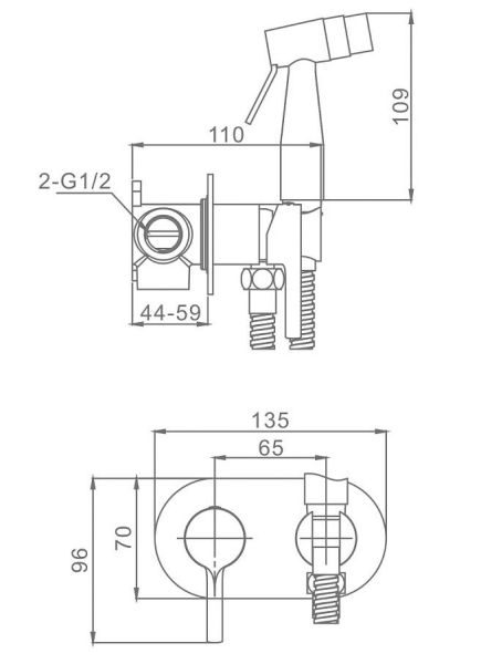 Качественный и современный смеситель с гигиеническим душем R20.52.03, одна рукоять для того, чтобы регулировать напор воды. Смеситель для биде устанавливается прямо внутрь стены, что позволит скрыть функциональные элементы, спрятать некоторые элементы монтажа. Душевая лейка работает в одном режиме. Высокопрочный душевой шланг 1200 мм в оплетке двойного вальцевания с трубкой из синтетического каучука вращающийся на 360 градусов. Основной материал корпуса - латунь, проверенный временем материал, который обеспечивает идеальное напыление хромированного покрытия.